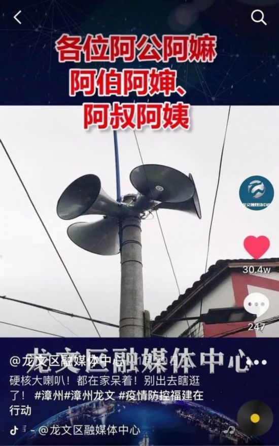 在抗擊疫情報道中,福建省漳州市龍文區(qū)融媒體中心借助電視、報紙、微信等平臺開展疫情防控報道,同時,重點發(fā)力音頻和短視頻,推出《硬核大喇叭!都在家呆著!別出去瞎逛了》等一系列群眾喜聞樂見的原創(chuàng)短視頻,成為當?shù)匦麄鞣揽刂R的一個有力平臺。