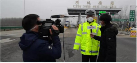 河南省項城市融媒體中心記者在高速路口采訪