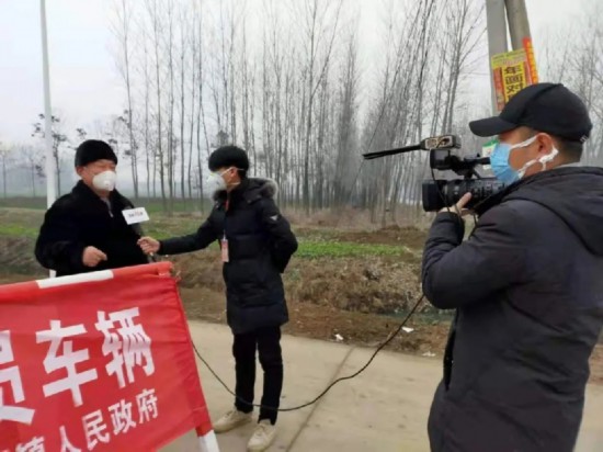 河南省項城市融媒體中心記者在疫情防控卡點采訪