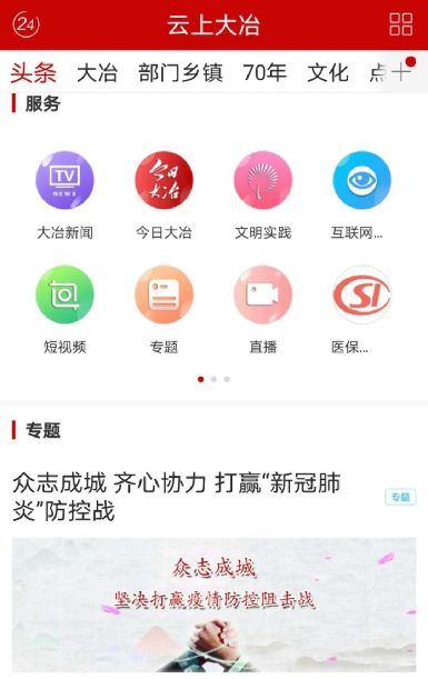 “云上大冶”客戶端頁面截圖