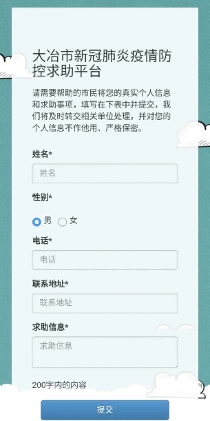 大冶市新冠肺炎疫情防控求助平臺頁面截圖