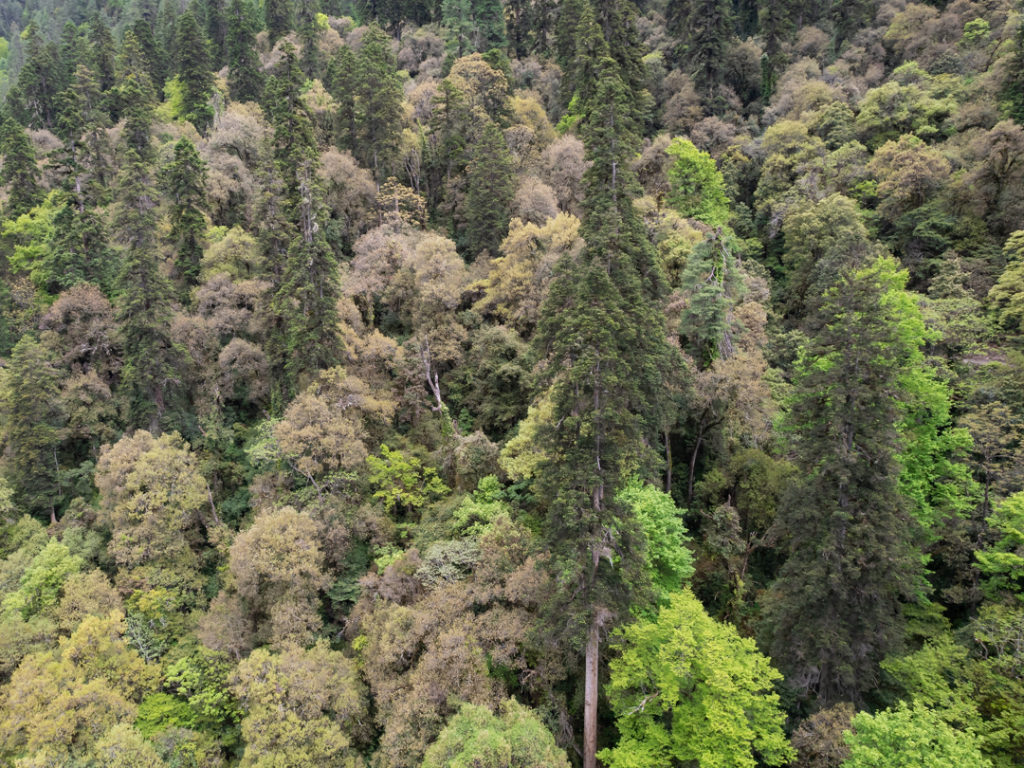 云南黃果冷杉原始森林,居中樹木高度為83.2米。(中科院植物研究所供圖)