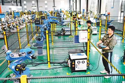 近年來,江西省贛州市加強青年技術人才技能培訓,促進適齡青年實現(xiàn)技能成才。圖為贛州市贛縣區(qū)的一家智能裝備制造企業(yè)內(nèi),幾名青年技工在加緊調(diào)試出口的工業(yè)機器人訂單產(chǎn)品。