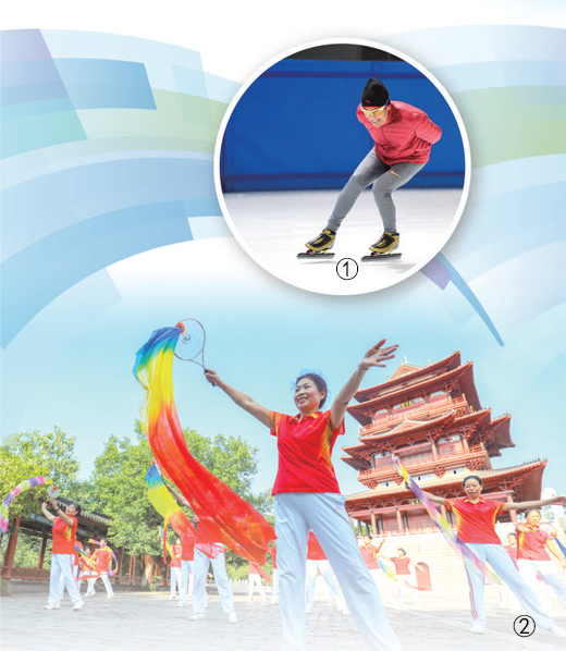圖①:內(nèi)蒙古呼和浩特體育中心綜合體育館,老年“冰迷”在室內(nèi)冰場滑冰。