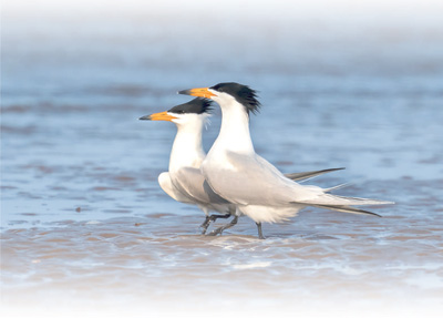 福建省福州市長樂區(qū)閩江河口濕地,中華鳳頭燕鷗在嬉戲覓食。