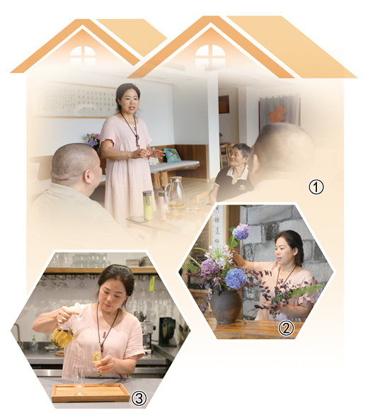 圖②:孫德紅在插花。