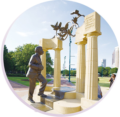 位于美國亞特蘭大市中心的百年奧林匹克紀念公園于1996年亞特蘭大奧運會舉辦之際建成,奧運會后成為當?shù)厝说倪\動和休閑場地。圖為園內“現(xiàn)代奧林匹克之父”顧拜旦的雕塑,以紀念其為復興現(xiàn)代奧林匹克運動所作的貢獻。