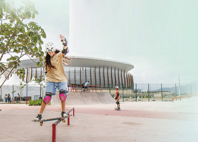 今年5月,巴西里約熱內盧的麗塔·李公園正式對公眾開放。該公園位于2016年里約奧運會的主賽區(qū)巴哈奧林匹克公園的核心區(qū)域,總面積13.6萬平方米,為市民提供滑板公園、攀巖墻、多功能運動場、兒童玩具區(qū)等多項新設施。圖為當?shù)啬贻p人在公園練習滑板。