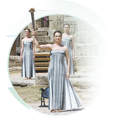 當?shù)貢r間4月16日,巴黎奧運會火種在奧林匹克運動發(fā)祥地——希臘古奧林匹亞遺址采集成功。儀式結束后,象征著光明、團結、友誼、和平、正義的奧運圣火正式開始傳遞之旅。圖為火種采集儀式上,由希臘女演員瑪麗·米娜(前)扮演的古希臘女祭司在展示火炬。