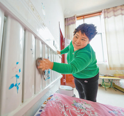 河北省玉田縣農(nóng)村居民在清潔電熱暖氣片。