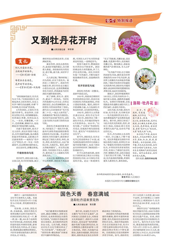 花開時(shí)節(jié),洛陽大街小巷、公園人家,牡丹灼灼綻放,展示著熾烈如火的絕色風(fēng)華,引來滿城賓客。