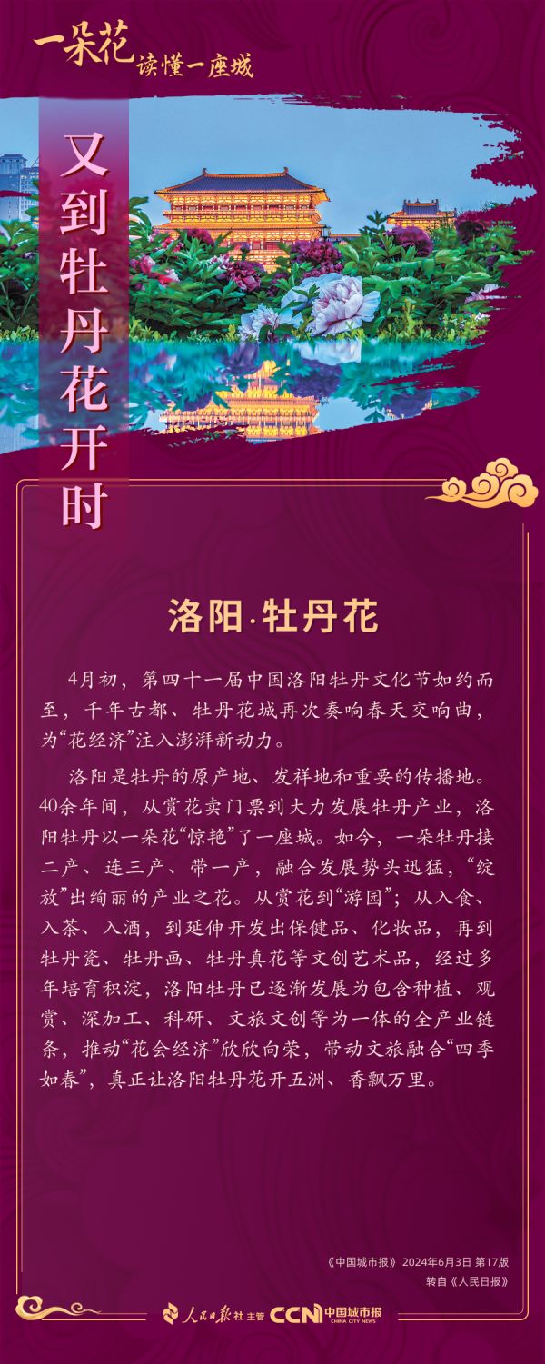 悠悠千載歲月,贊頌洛陽牡丹的詩文不勝枚舉。洛陽因著這些古老的篇章,多了幾聲歷史的回響。而牡丹則用年復(fù)一年的盛開,不斷為城市綻放著新的生機(jī),創(chuàng)造著新的機(jī)遇。