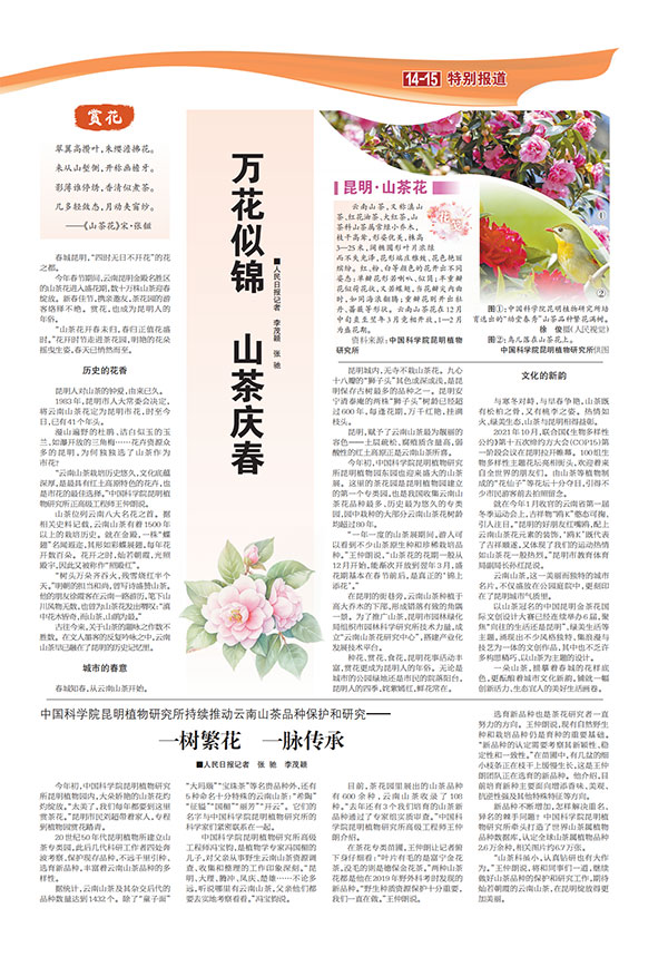 20世紀(jì)50年代昆明植物所建立山茶專類園,此后幾代科研工作者四處奔波考察、保護現(xiàn)存品種,不遠千里引種、選育新品種,豐富著云南山茶品種的多樣性。