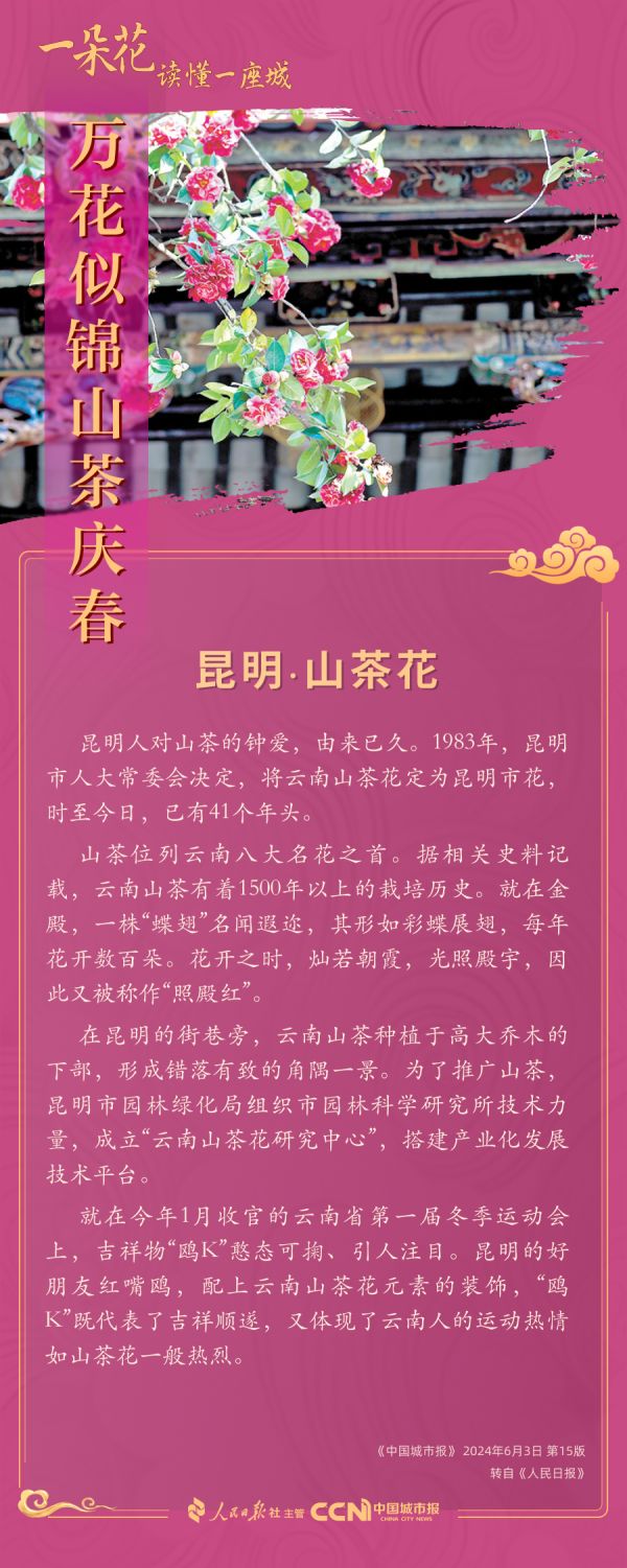一朵山茶,描摹著春城的花樣底色,更醞釀著城市文化新韻,鋪就一幅創(chuàng)新活力、生態(tài)宜人的美好生活畫卷。
