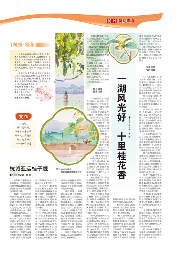 去年秋天,杭州迎來亞運(yùn)盛會(huì)。四海的賓朋來杭州賞秋,馥郁的桂花香也和運(yùn)動(dòng)健兒的拼搏熱情相互交融。