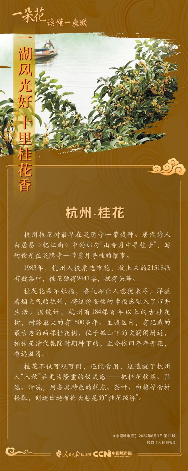 《山海經(jīng)》有言:招搖之山多桂。在我國(guó),桂花的種植歷史已有2500多年。在杭州,一縷桂花香也已綿延了上千年。