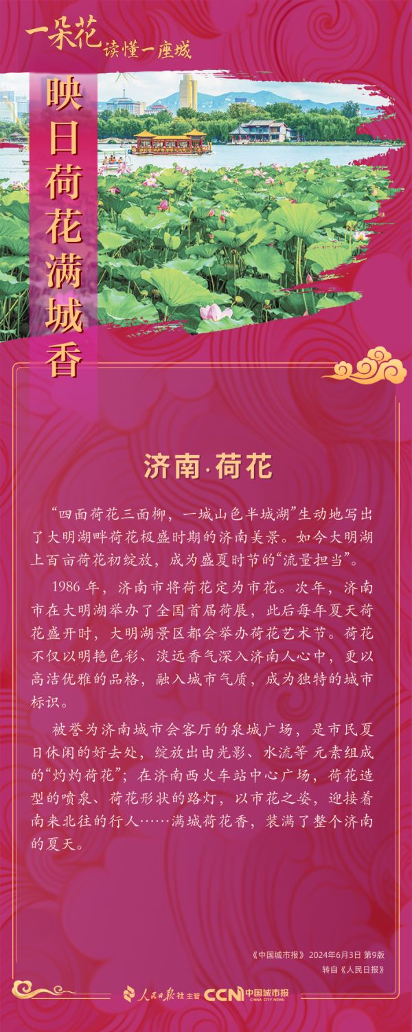 因趵突泉而靈動(dòng),因千佛山而持重,因大明湖而秀美,坐擁三大名勝的古城濟(jì)南,更因“出淤泥而不染,濯清漣而不妖”的荷花,凸顯獨(dú)特的城市氣質(zhì)。