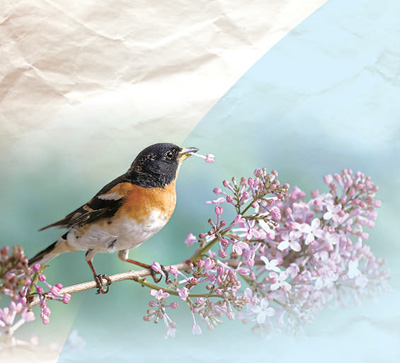 小鳥站立在哈爾濱紫丁香枝頭。