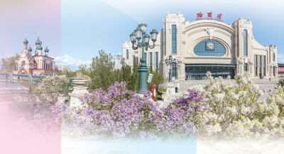 哈爾濱火車站前,丁香盛放。