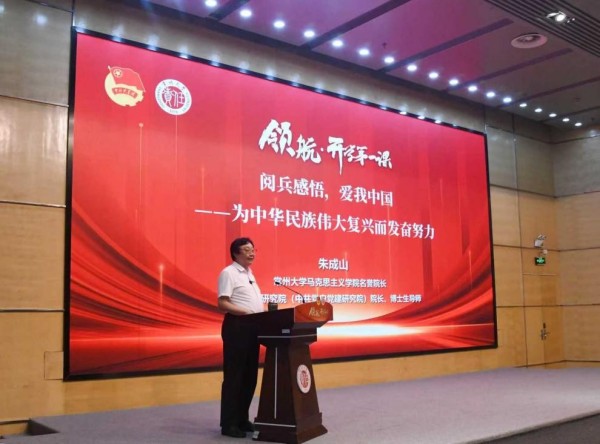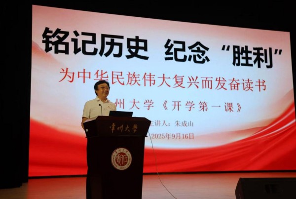 下午,朱成山應(yīng)邀出席由校團(tuán)委組織的“不忘來時(shí)路 奮進(jìn)新征程”——常州大學(xué)紀(jì)念中國人民抗日戰(zhàn)爭暨世界反法西斯戰(zhàn)爭勝利80周年“領(lǐng)航•開學(xué)第一課”,并在會(huì)上作題為《閱兵感悟、愛我中國——為中華民族偉大復(fù)興而發(fā)奮努力》“開學(xué)第一課”講座。朱成山面向全校共青團(tuán)干部和部分大學(xué)生代表,分享了他以30多年閱歷的歷史工作者、曾穿戴過20年部隊(duì)軍裝的退役老同志和有著8年高校思政教師的三種不同身份,參加在北京參加閱兵式的三點(diǎn)感悟,特別比較了兩次參加抗戰(zhàn)勝利閱兵式的不同體驗(yàn)并結(jié)合自身經(jīng)歷,對常大青年學(xué)子提出三點(diǎn)殷切希望:一是要銘記歷史,不忘中國從苦難走向輝煌的歷史;二是要永懷“愛國”之心,將個(gè)人理想融入國家發(fā)展大局;三是要勇?lián)?ldquo;責(zé)任”之使命,保持“勤奮”之態(tài),為中華民族偉大復(fù)興貢獻(xiàn)智慧與力量。據(jù)介紹,這是朱成山連續(xù)第四年為常州大學(xué)校團(tuán)干部講授《開學(xué)第一課》。