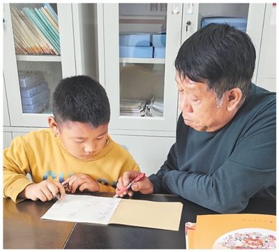 銀齡教師李志華(右)在輔導(dǎo)學(xué)生。