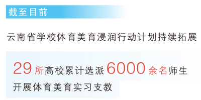 通過(guò)體育美育浸潤(rùn)行動(dòng)計(jì)劃,云南已從全省高校選派6000余名師生,定向幫扶薄弱地區(qū)中小學(xué),積極參與受幫扶學(xué)校的體育、音樂(lè)、美術(shù)等學(xué)科教學(xué),讓鄉(xiāng)村孩子也能享受到優(yōu)質(zhì)的體育美育教育,全面提升綜合素質(zhì)。