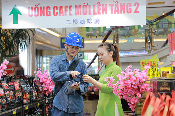 9月29日,在防城港東興國門景區(qū),南方電網(wǎng)廣西防城港東興供電局工作人員向商戶發(fā)放片區(qū)經(jīng)理名片,告知安全用電注意事項。鐘復萍 攝