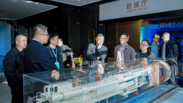 參會代表參觀超深豎井建造設(shè)備展示。