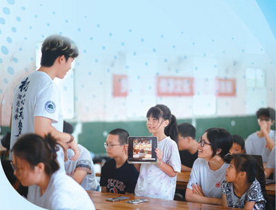 湖南懷化通道侗族自治縣萬佛山鎮(zhèn)木腳村,支教大學(xué)生在給孩子們上人工智能實(shí)驗(yàn)課。