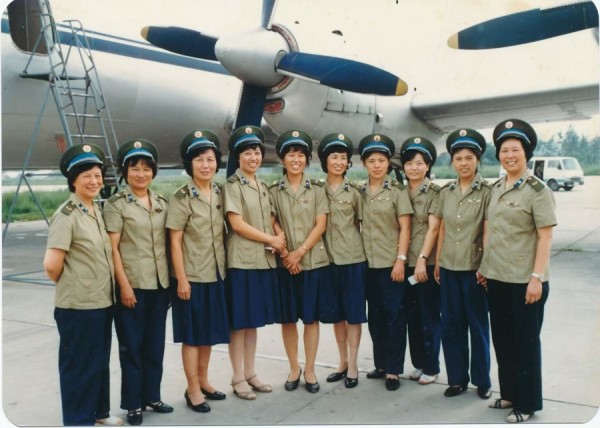 1985年,在北京西郊機場女飛行員合影,左五為底建秀。