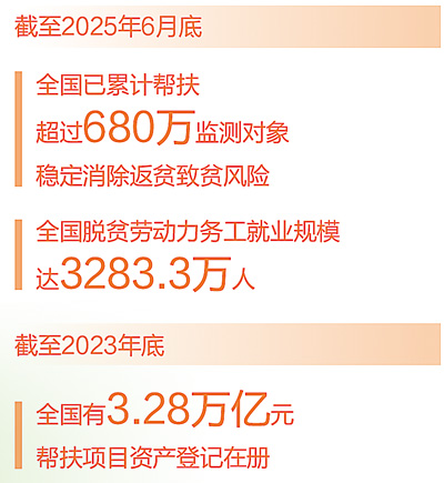 防止返貧動態(tài)監(jiān)測幫扶機制是鞏固拓展脫貧攻堅成果最基本的制度安排。這幾年,各地建立健全防止返貧致貧動態(tài)監(jiān)測幫扶機制,截至6月底,全國已累計幫扶超過680萬監(jiān)測對象穩(wěn)定消除返貧致貧風險,義務教育、基本醫(yī)療、住房安全和飲水安全保障水平得到鞏固提升。