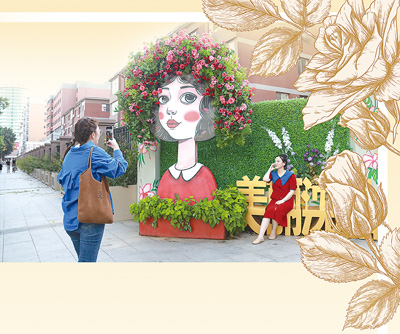 在沈陽主干路青年大街沿線,一處設(shè)計精巧的景觀小品吸引很多市民游客駐足觀賞——一名“少女”頭頂絢麗的玫瑰花冠,花叢邊一張精心設(shè)計的長椅,供行人停留休憩,周圍的小區(qū)圍欄更被花墻包圍。