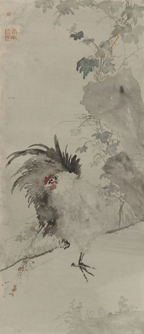 指畫探索是劉萬鳴先生“求意”路上的重要突破。他深入研究了清代高其佩等指畫大家的傳統(tǒng),但并非簡單復(fù)刻,而是追求“指墨雖異,其理一同”。他認(rèn)為“指畫能破筆之樊籠,得筆難至之天趣與古拙。” 以指代筆,線條更顯生辣奇崛,如萬歲枯藤;用掌潑墨,墨色愈發(fā)渾厚華滋,盡顯蒼潤。在此單元,《蕉蔭棲禽》等指畫新作,既保留了指墨特有的“偶發(fā)”與“生澀”,又處處體現(xiàn)其嚴(yán)謹(jǐn)?shù)臉?gòu)圖控制與精微的造型意識,實現(xiàn)了“拙中寓巧”“亂中見整”的高難度平衡。這一探索,不僅拓展了其花鳥畫的語言邊界,更體現(xiàn)了一位成熟藝術(shù)家在深入傳統(tǒng)堂奧后,勇于打破工具局限、直指藝術(shù)本真——“意”的至高境界。