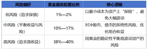 “黃金是調(diào)料不是主食。”魯政委用一個(gè)生動(dòng)的比喻,點(diǎn)明黃金在資產(chǎn)配置中的定位。他將投資者分為三類(lèi)風(fēng)險(xiǎn)偏好,并給出了對(duì)應(yīng)的黃金配置比例: